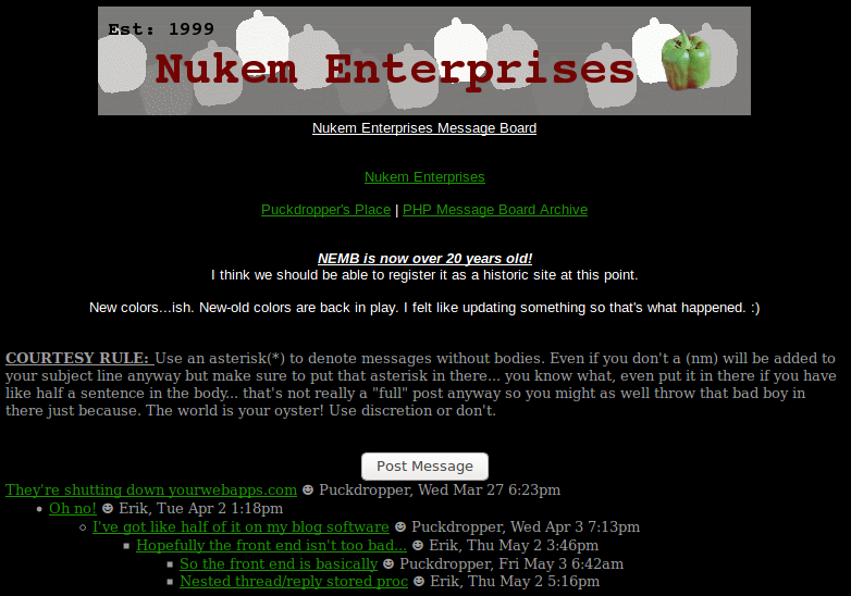 This project has expanded from it's original intention of just a NEMB remake and now is a fully blown message board hosting service that is (more or less)